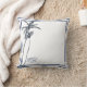 D'élégants palmiers forment la canopée au-dessus de vos initiales sur l'oreiller à lancer. Elégant Tropical Vintage bleu profond. Le palmier est sur un arrière - plan de blanc avec deux cadres bleus. L'arrière a le motif de palmiers. Palmiers de la Belle Conception de Chessie.