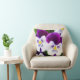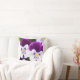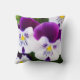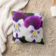 Ce mignon oreiller à jetons présente de belles pansies avec des pétales violets et blancs.