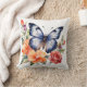 Coussin Papillon Aquarelle Bleue Fleurs Éclatantes Rouge P