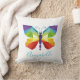 Plutôt personnalisé, lancez un oreiller pour votre papillon préféré. Un papillon simple, mais élégant, peint, aux couleurs vives de l'arc-en-ciel. Avant de coussin a un grand papillon centré, avec tout nom écrit ci-dessous. Le dos du coussin a un design de petits papillons peints éparpillés.