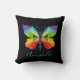 Joli oreiller de lancer personnalisé pour votre papillon préféré amoureux. Un papillon peint simple, mais élégant, aux teintes vives de l'arc-en-ciel. Avant du coussin a grand papillon centré, avec n'importe quel nom scripté ci-dessous. Le dos du coussin a un design de petits papillons peints éparpillés.