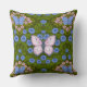 Coussin Papillons et symétrie des fleurs, bleu et rose