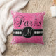 Ce carreau affligé de MoJo d'Américain de motif de damassé de roses indien avec le monogramme personnalisé, le mot Paris avec Tour Eiffel et une ligne des diamants blancs imprimés sur une bande noire semblera extraordinaire dans votre chambre à coucher ou salon comme coussin d'accent. La galerie Gifts© Elke Clarke de monogramme conçoit le ©