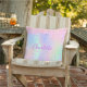 Un arrière - plan holographique à la mode couleur arc-en-ciel aux couleurs pastel unicorne et arc-en-ciel rose, violet, or rose, vert menthe. Décoré avec des gouttes de parties scintillant en or rose, rose et violet. Personnalisez et ajoutez un nom et des initiales monographiques. Le nom est écrit avec un script de style moderne écrit à la main. Lettres violettes et roses.