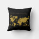 Coussin Parties scintillant d'or Carte du monde sur Black