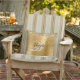 Faux parties scintillant dorée brillante avec étincelles contre une image graphique en feuille jaune or en métal brossé sur un oreiller extérieur personnalisable. Le style de police de calligraphie noir et blanc du nom et du monogramme au centre peut être customisé. Tous les éléments brillants et brillants de ce design girly moderne sont des graphismes numériques. Un luxe pour l'anniversaire de votre fille.