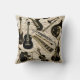 Ce design musical amusant présente une variété d'instruments de musique sur une feuille de musique vintage, arrière - plan de collage. La palette de couleurs noir et or tendance fait un oreiller à lancer accrocheur. Les instruments présentés sont : guitare acoustique et électrique, saxophone, clarinette, trombone, trompette, corne française, flûte, violon, violoncelle et batterie. Ajoutez votre nom ou autre texte à personnaliser. Recherchez ID481 pour voir d'autres choix de couleurs et produits avec ce motif.