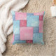 Un joli carreau ou coussin, avec un patchwork de faux de motif rose et bleu de denim, d'une conception pour aquarelle peinte à la main de Judy Adamson. Le motif sur les coordonnées de verso mais n'est pas identique.