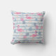 Coussin avec un motif avec une ambiance estivale amusante. Flamants roses et ananas posés sur un motif rayé bleu clair avec feuilles et coeurs tout autour.
