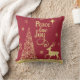 Un bel oreiller de Noël avec un joli faux arbre de Noël Parties scintillant d'or avec des flocons de neige et un renne sur un arrière - plan rouge et un script de Parties scintillant d'or avec "Peace Love and Joy". À l'arrière, vous pouvez le personnaliser avec votre propre nom de famille à partir du menu Personnaliser ou le supprimer.