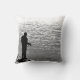 Éloignons-nous de tout ça et allons pêcher ! Customisez ou retirez facilement le texte sur cet oreiller de lancer qui présente l'image en noir et blanc d'un pêcheur solitaire debout sur une corniche rocheuse au lac Seneca à Genève, New York. Le texte dit : "On a pêché"