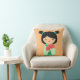 Coussin Pêche rose et aqua Kokeshi Poupées japonaises