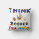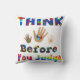 Le message "PENSEZ avant de juger" avec des mains de diversité et d'inclusion pour respecter les personnes atteintes de troubles du spectre autistique et encourager la bonté envers l'autre.