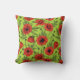 Coussin Pépites, rouge et vert sur le vert citron