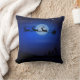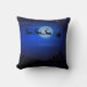 Carreaux réversibles de Noël comportant un sillhouette de Père Noël et de son traîneau tiré par le renne contre un ciel nocturne étoilé bleu de minuit avec une lune brillant à l'arrière-plan. De l'arrière est un sillhouette d'un arbre de Noël et d'un ciel étoilé bleu noir et de minuit. Avec deux coussins vous pouvez montrer les deux côtés ensemble en même temps.