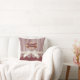 Un oreiller vintage de style victorien, à rayures verticales rouge foncé et blanc crémeux, agrémenté d'une image de ruban couleur crème attaché à un arc sucré fixé à un chapelet de perles élégantes, lance un carré de style victorien. Personnalisez ce design élégant en ajoutant votre nom au cadre doré orné. REMARQUE : Il s'agit d'une image imprimée à plat. L'arc, la dentelle, les perles et le cadre doré ne sont PAS réels.