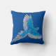 Jetez un oreiller à motifs avec un perroquet Amazon en vol - bleu et blanc cérusé contre un arrière - plan bleu cobalt profond - numériquement photographie améliorée