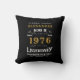 A personalized classic throw pillow design for that birthday celebration for somebody born in 1976 and turning 50. Add the name to this vintage retro style black, white and gold design for a custom birthday gift. Easily edit the name and year with the template provided. A wonderful custom black birthday gift. More gifts and party supplies for that party celebration available with the "Legendary" design in the store.