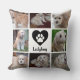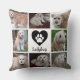 This cozy pillow design features a heartwarming collage layout showcasing your beloved dog’s best moments. Soft neutral tones highlight each adorable photo, centered with a black heart paw print and your pet’s name in elegant script. The warm, inviting style adds a personal touch to any home, celebrating your furry friend with charm and love.