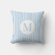 Simple, clean, pretty vertical pinstripe pastel blue throw pillow, personalized with your initial. Perfect for your bedroom, a dorm room, or a nursery.