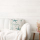 This coastal themed summer time throw pillow features watercolor starfish in various shades of sage green, from faint to deep, against a tan beige background on this beautiful double-sided cushion. Personalize with your family name in a playfully elegant script font arching slightly across the center in the deepest green of the darkest sea creature. The back of the beautiful custom cushion picks up the summer cream ivory for a background accented with a nautical compass in shades of green lifted from the starfish on the front. A modern serif font designates north, east, south and west on the compass points for a true maritime display.