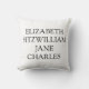 Coussin avec les prénoms des personnages principaux du roman Orgueil et Préjugés de Jane Austen : Elizabeth, Fitzwilliam, Jane, Charles. Un excellent coussin pour votre propre bibliothèque à la maison. Parfait pour les amoureux des livres et les fans de Jane Austen.