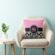Coussin personnalisé par monogramme noir de rose de damassé. Conception par le © d'Elke Clarke. Personnaliser avec votre nom et monogramme. Changez la couleur d'arrière - plan et la couleur de monogramme trop si vous aimez personnaliser complètement votre carreau pour assortir vos couleurs de chambre à coucher. Un grand cadeau pour des ados et des mamans.