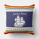 partie de la décoration marine marine rayures bleu marine, jaune et rouge COUSSIN d'un côté et marine de l'autre. conceptions nautiques parfaites pour la vie côtière, décor lac, décoration fluviale, nautique, pêcheur," amoureux du poisson", "chambre enfant" et plus encore...