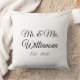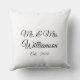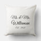 Personnaliser le nom de famille, l'année, le numéro du couple Coussin jet noir et blanc