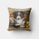 Jeune chiot à chien noir blanc bicolore Miniature American Shepherd sur un banc en bois, la race de chien intelligente est aussi appelée Miniature Australian Shepherd. Une jolie photo de chien prise par Katho Menden, cet coussin est une idée cadeau enchanteresse pour les amateurs de chiens et d'animaux de compagnie.
