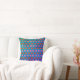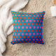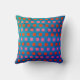 Rafraîchissez votre chambre ! Throw oreiller a un motif carré géomtrique en rose et orange contre un arrière - plan bleu texturé. Cliquez sur "Customisez-le" pour ajouter votre monogramme ou votre nom et créer votre propre design unique d'un genre unique !
