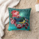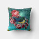 COUSSIN PETIT OISEAU ET ROSES ROSES ROSES ROSES AQUA BLEU,