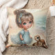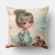 Une Adorable Petite Fille Sur La Plage Avec Ses Enfants Tortues Jetant L'Oreiller