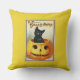 Une merveilleuse image vintage d'Halloween avec un petit chat noir doux assis dans une lanterne de valet. Soigneusement restauré et doté d'un cadre stylisé. Quel grand coussin de lancer pour vos festivités d'Halloween.