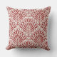 Cet oreiller à jetons présente des coquilles Saint-Jacques de style art déco dessinées à la main ou un motif de ventilateur à la texture vintage en rouge sur crème pour un look bohème.