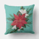 Photos de famille Poinsettia Noël jetez un oreiller décoration cadeau avec l'année et élégant turquoise et blanc clip art floral.