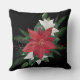 Photos de famille Poinsettia décoration cadeau de Noël jetez oreiller avec l'année et élégant art floral noir et blanc clip art.