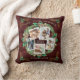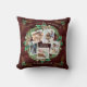 "Farmhouse Family Photo Aquarelle Pine Cône et Wreath Holly avec Typographie Parties scintillant Or Jeter Oreiller." Customisé avec votre nom de famille et vos photos. OEuvre d'aquarelle peinte dans un élégant style campagnard chic pour les vacances hiver et Noël. Message de style de typographie d'or, "TIS THE SEASON." Un arrière - plan de bois de grange restauré et burgundy rustique décolle le cône de pin et la couronne sainte avec feuillage vert feuillage et des accents de parties scintillant dorée subtile. Art par Audrey Jeanne Roberts, artiste et designer de renommée internationale, copyright.