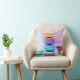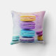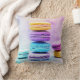 Coussin avec une délicieuse photo avec une pile de macarons colorés.
