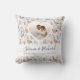 Beaux coussins décoratifs floraux vintage qui feraient le cadeau de mariage, d'anniversaire ou de Saint-Valentin parfait. Le design présente un motif floral de rose et de verdure sur fond blanc. Créez votre propre cadeau unique en ajoutant une photo personnalisée, les noms du couple et leur date de mariage.