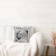 Ce magnifique coussin est orné d'un arrière - plan blanc enneigé et d'une belle photo en noir et blanc d'Olive, un magnifique mélange de Labrador. Image et initiale sont personnalisables.