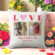 Valentines Day, Coussin de la fête des Galentines avec 2 photos Joli script d'amour en rose et rouge sur arrière - plan blanc. D'autres produits avec ce design sont dans la collection ci-dessous. Crédit photo : Couple Family Photo par Terri Cnudde from Pixabay.com; Artistic Films Couple Photo sur Pixabay.jpg