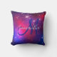 Créez votre propre oreiller monogrammé personnalisé unique en cadeau pour son événement spécial sur le thème céleste tel qu'une fête d'anniversaire. Une photo colorée de l'espace bleu et rose de l'amas de galaxies Abell 2744... Pandora's Cluster. Style de police : Calligraphie élégante blanche et bleue pour un nom donné et un bleu coordonné pour le monogramme moderne. Cette image cosmique a été adaptée à partir d'une image de la NASA Hubble. Les couleurs principales sont le rose chaud, le rose, le violet, le magenta et différentes nuances de bleu foncé.
