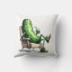 Un cornichon anthropomorphe gai se détend dans une chaise avec une boisson verte et de la paille