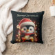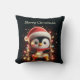 Coussin Pingouin mignon enveloppé dans les lumières de Noë