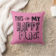 Voici Mon Coussin Happy Place avec un arrière - plan rose. Ajoutez un nom sur le dos pour cette touche personnelle