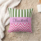 Coussin Pink Zigzag, chevron, Green Stripes, Your Name