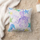 Un poulpe mauve de lavande douce joue dans la mer avec un hippocampe et un assortiment d'étoiles de mer, le tout peint à la main en aquarelle acrylique sur toile. Ils sont montrés sur un arrière - plan de lavande douce avec des plaques bleues. L'envers est une plaid peinte à la main en bleu aqua, bleu, vert citron et lavande. Un ensemble complet de designs est disponible pour coordonner votre propre décoration. Copyright, Audrey Jeanne Roberts.