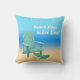 Rien ne dit été comme les couleurs cool et les graphismes amusants de ce coussin. La couche arrière - plan est d'un bleu doux et d'un beige sablonneux. La couche deux est dotée d'un transat adirondack invitant, avec une paire de tongs, qui vous invite à vous asseoir, vous détendre et profiter de la plage. L'arrière du coussin comporte un motif répété des tongs sur les couleurs arrière - plans.