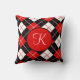 Oreiller jeté à plaid Argyre Rouge, Noir et Blanc avec monogramme personnalisé